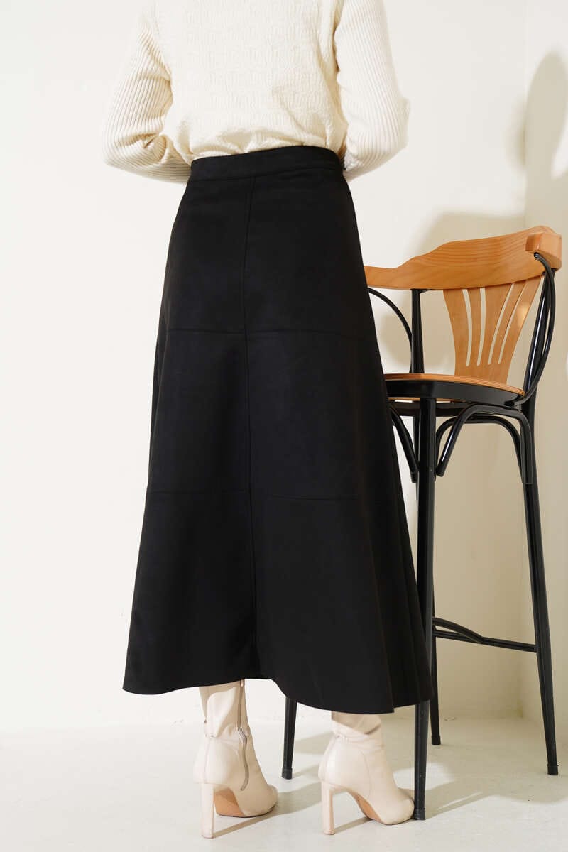 Fermuarlı Kadın Süet Etek Parça Detaylı