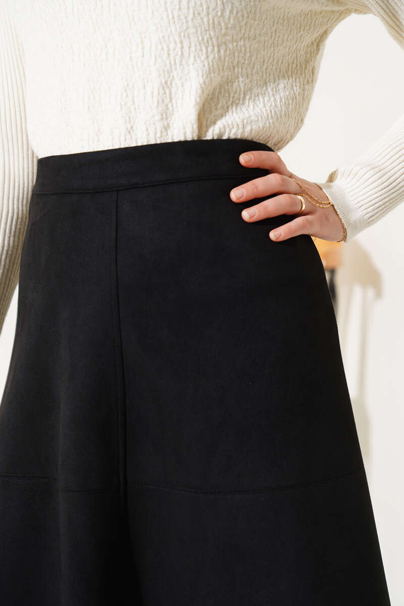 87 cm uzunluğu ile hem günlük hayatta hem de ofis stilinde kolayca kullanılabilir. Sıcak taba ve siyah tonlarıyla her bedene uyum sağlar. Kadın süet etek modelleri, klasik ve modern tarzı bir araya getirerek her mevsim dolabınızda yer almayı hak ediyor.