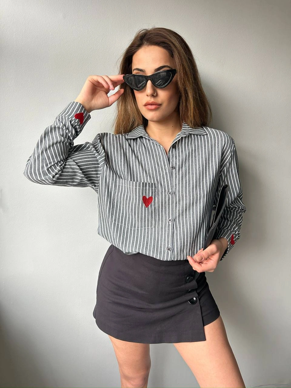 Oversize Kalp Nakışlı Gömlek – Günlük Şıklığın Yeni Yıldızı